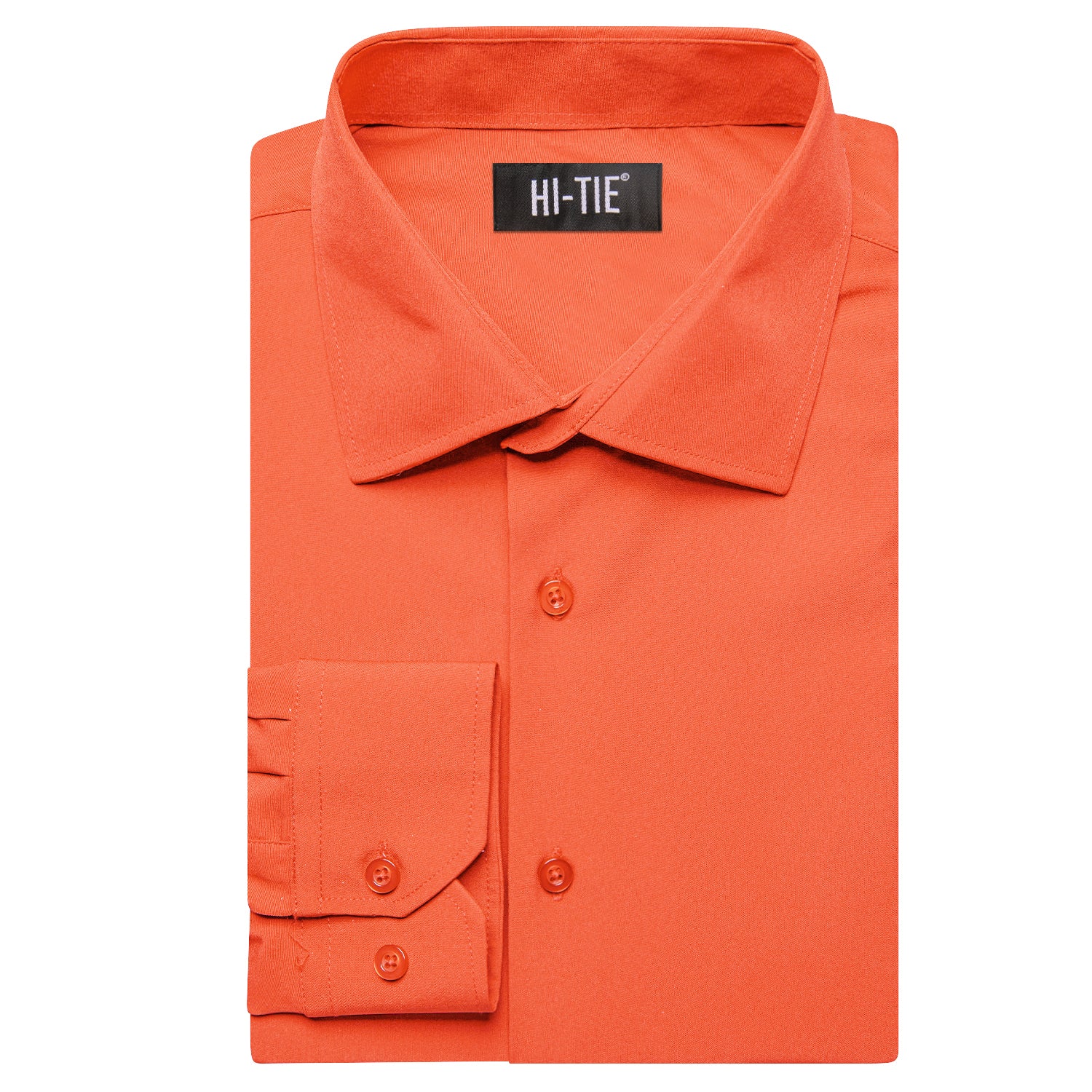 Orange Solid Four-way Stretch Fabric Men's Long Sleeve Shirt