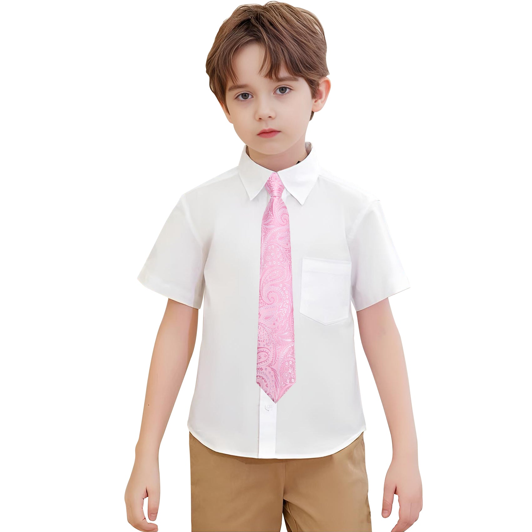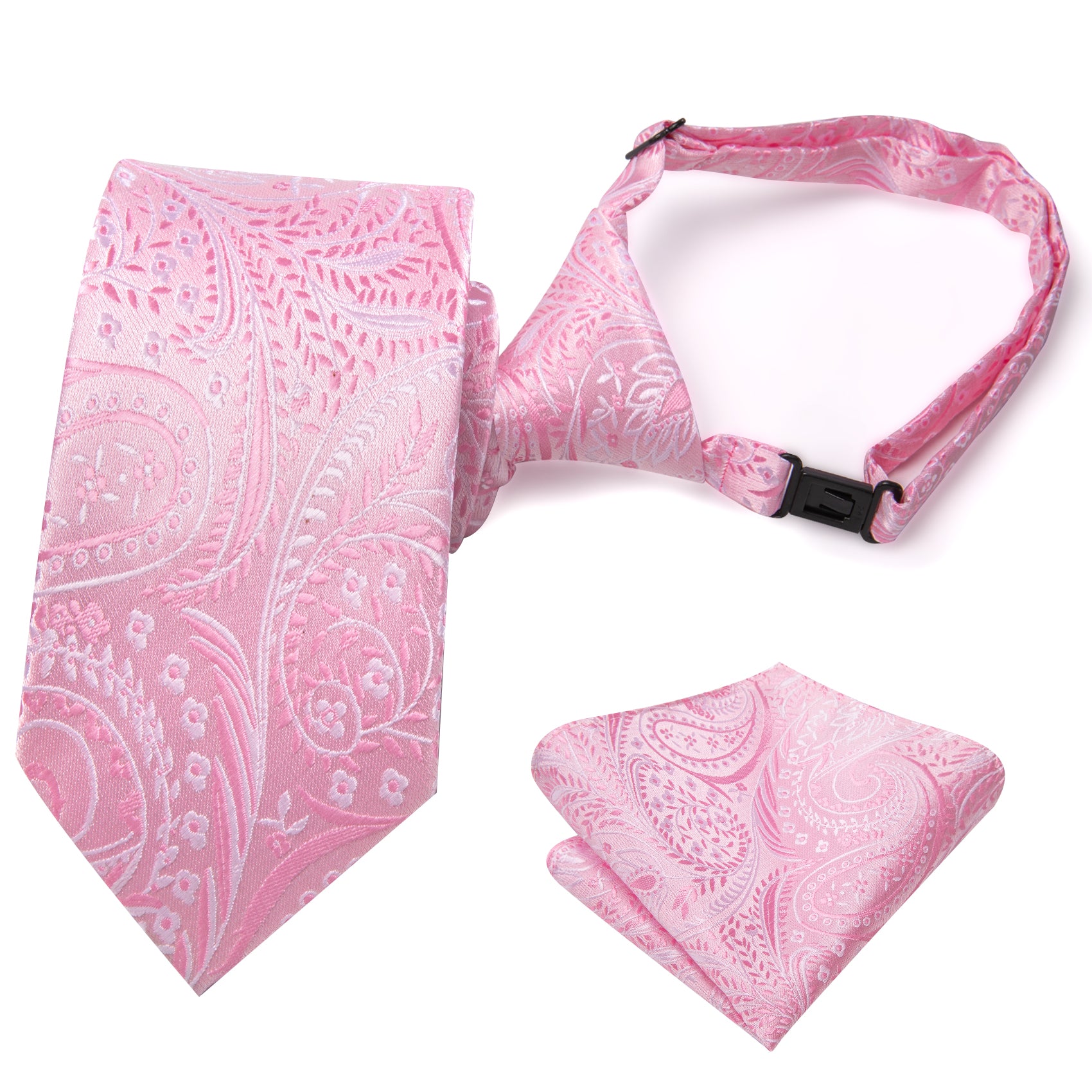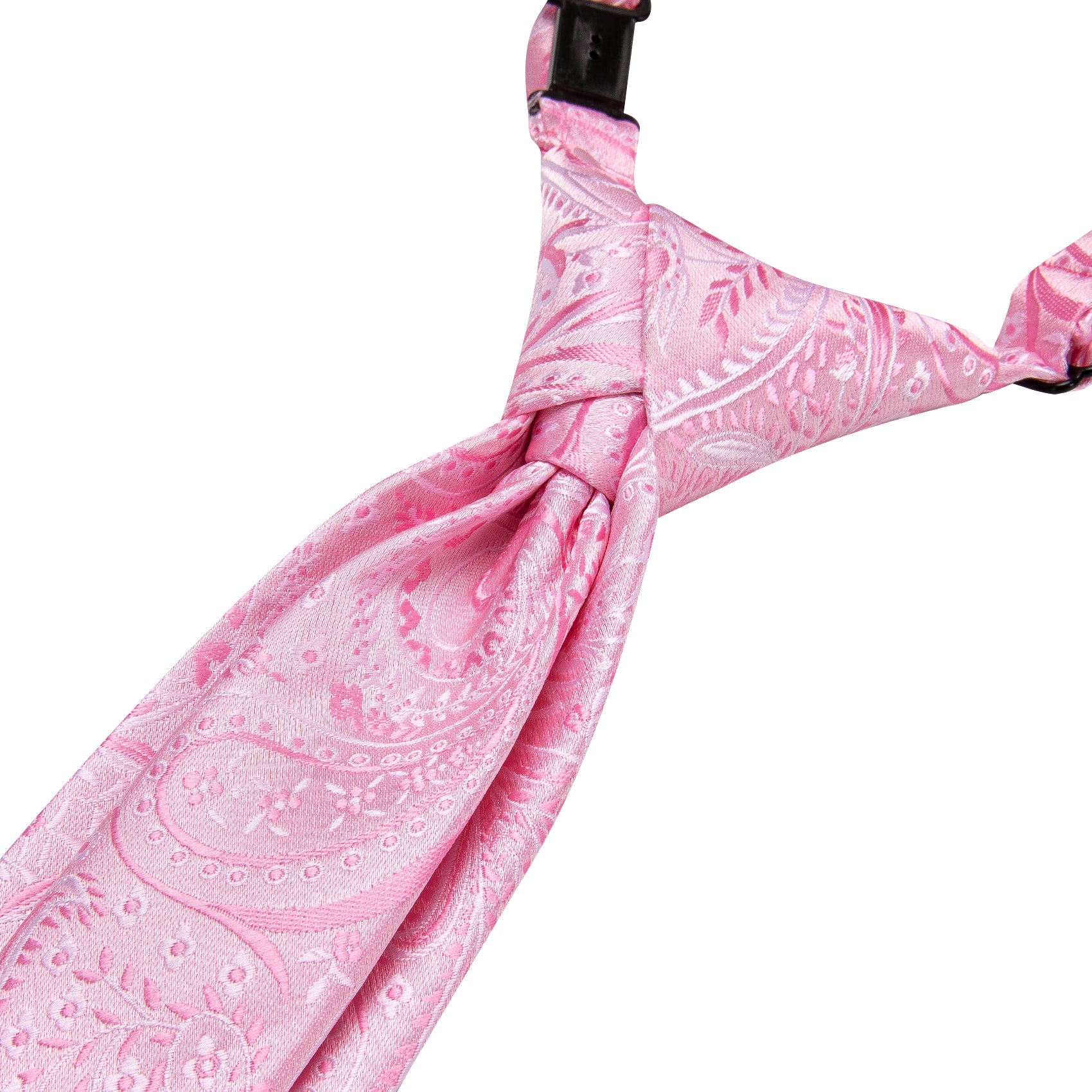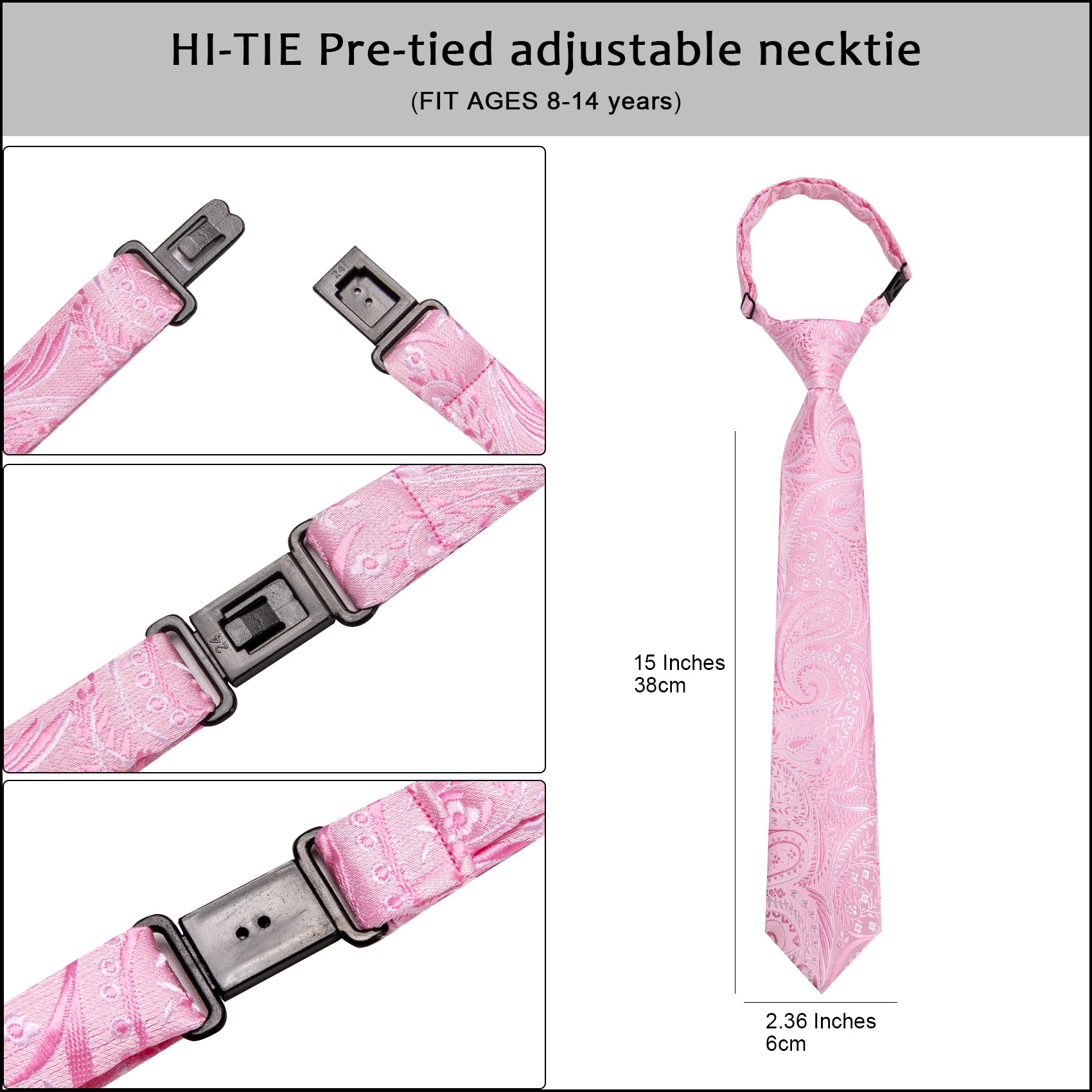 Hi-Tie Pink Necktie Paisley Boys Pre-tied Adjustable Tie Pocket Square