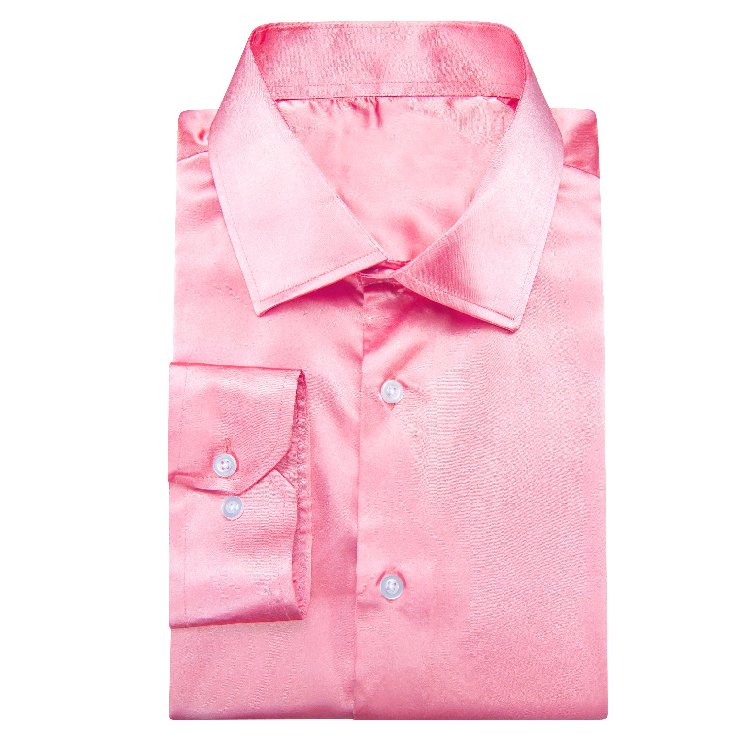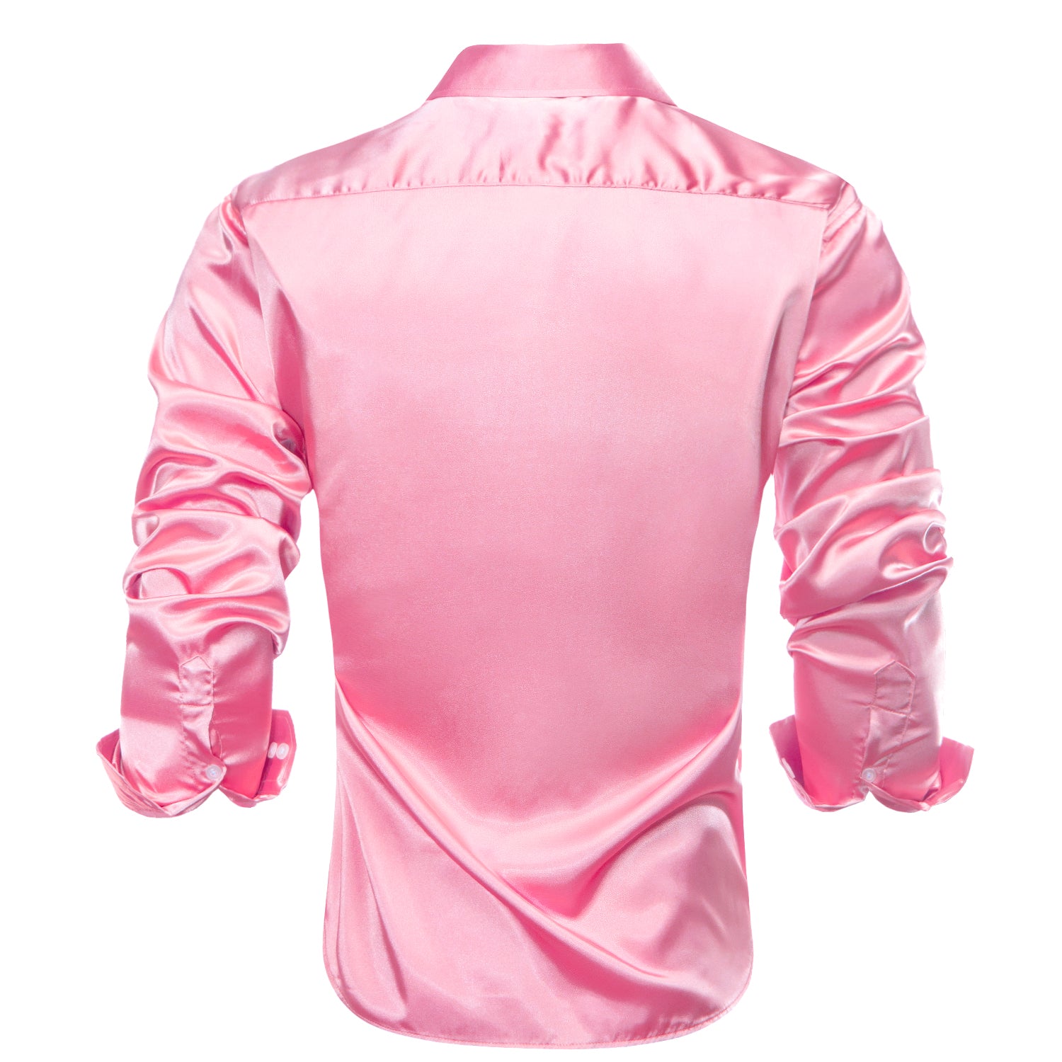 Pink Solid Satin Men's Long Sleeve Dress Shirt