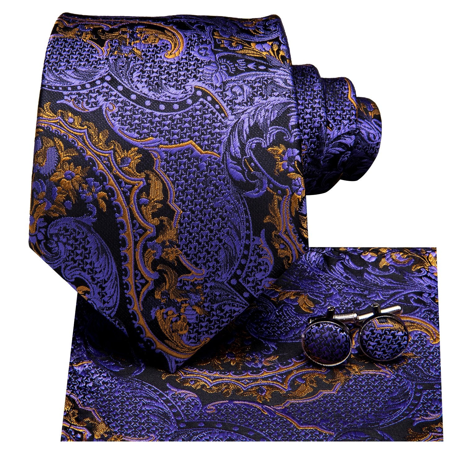 Hi-Tie Dark Purple Paisley Men's Necktie Pocket Square Cufflinks Set