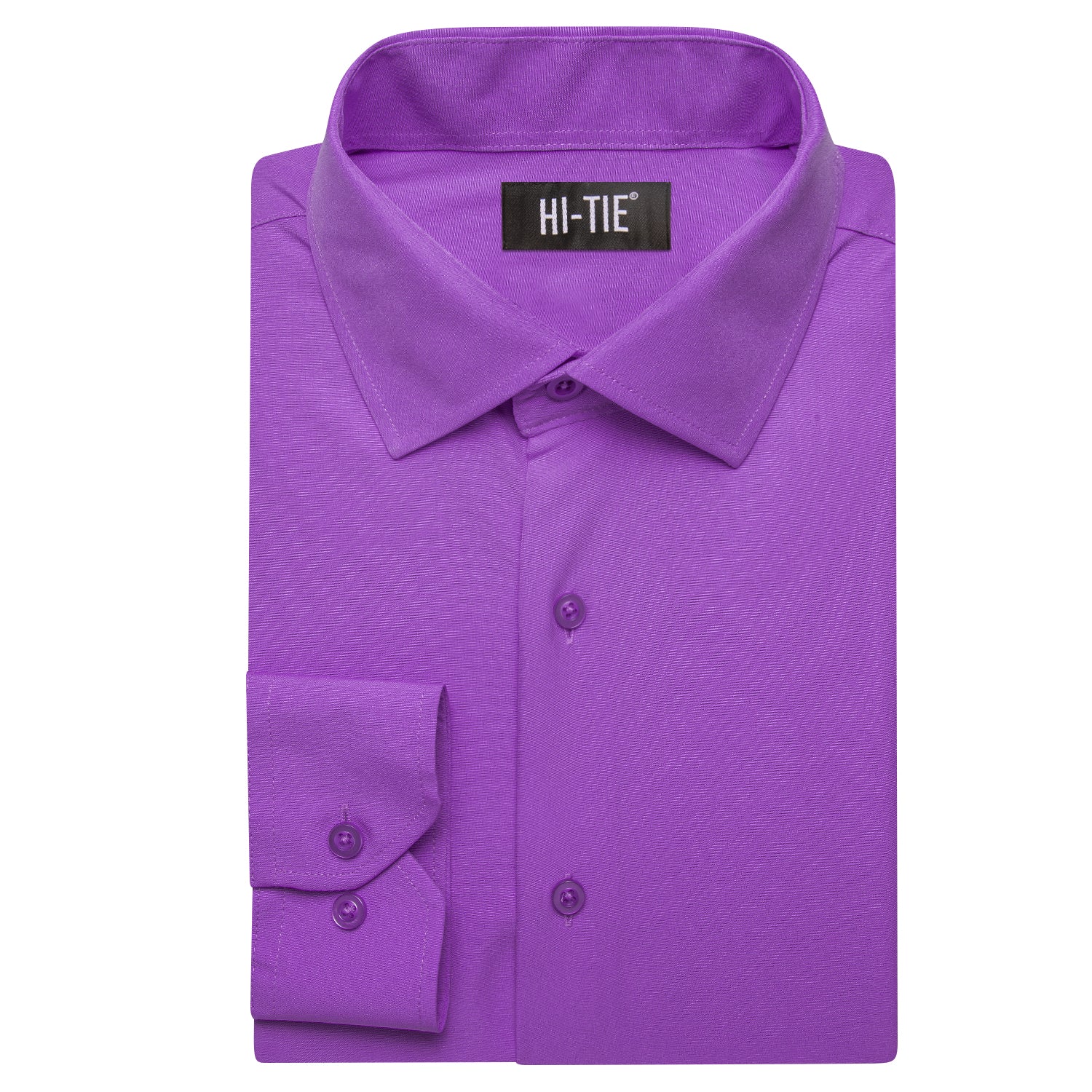 Purple Solid Four-way Stretch Fabric Men's Long Sleeve Shirt