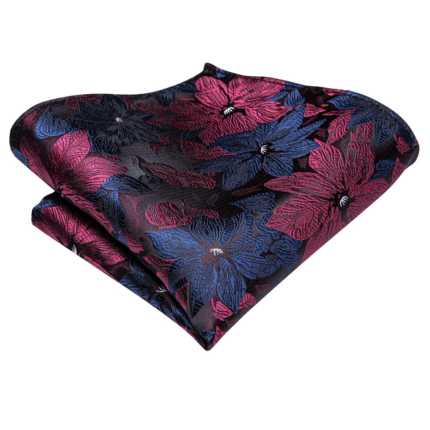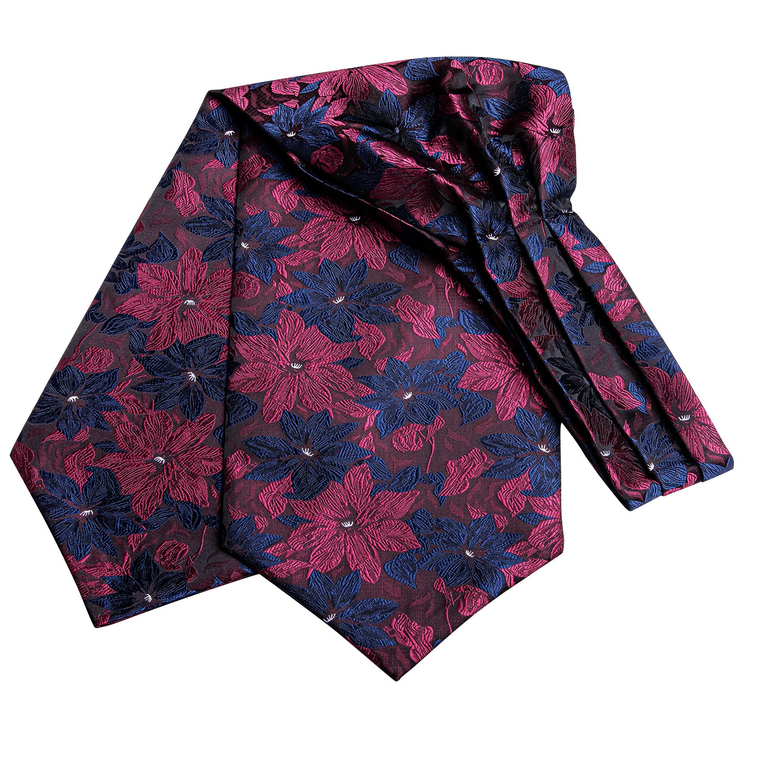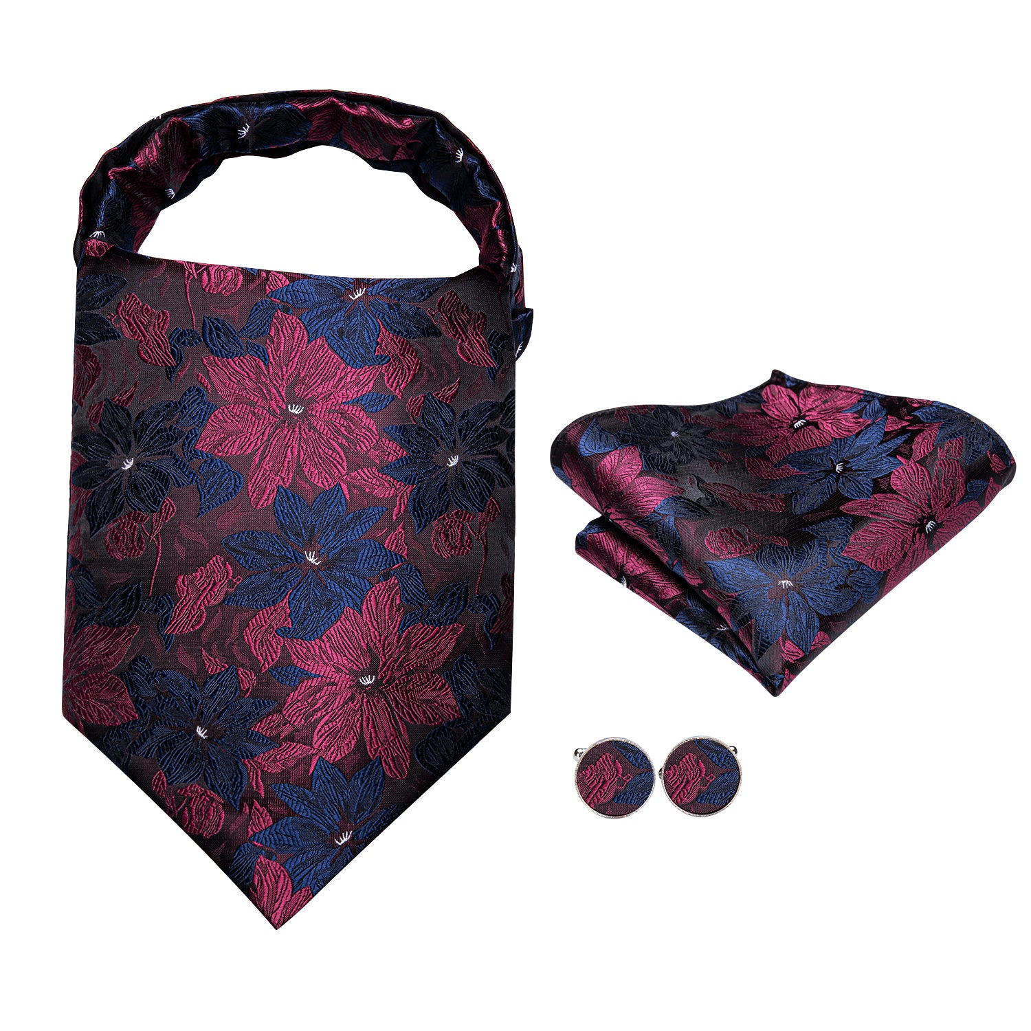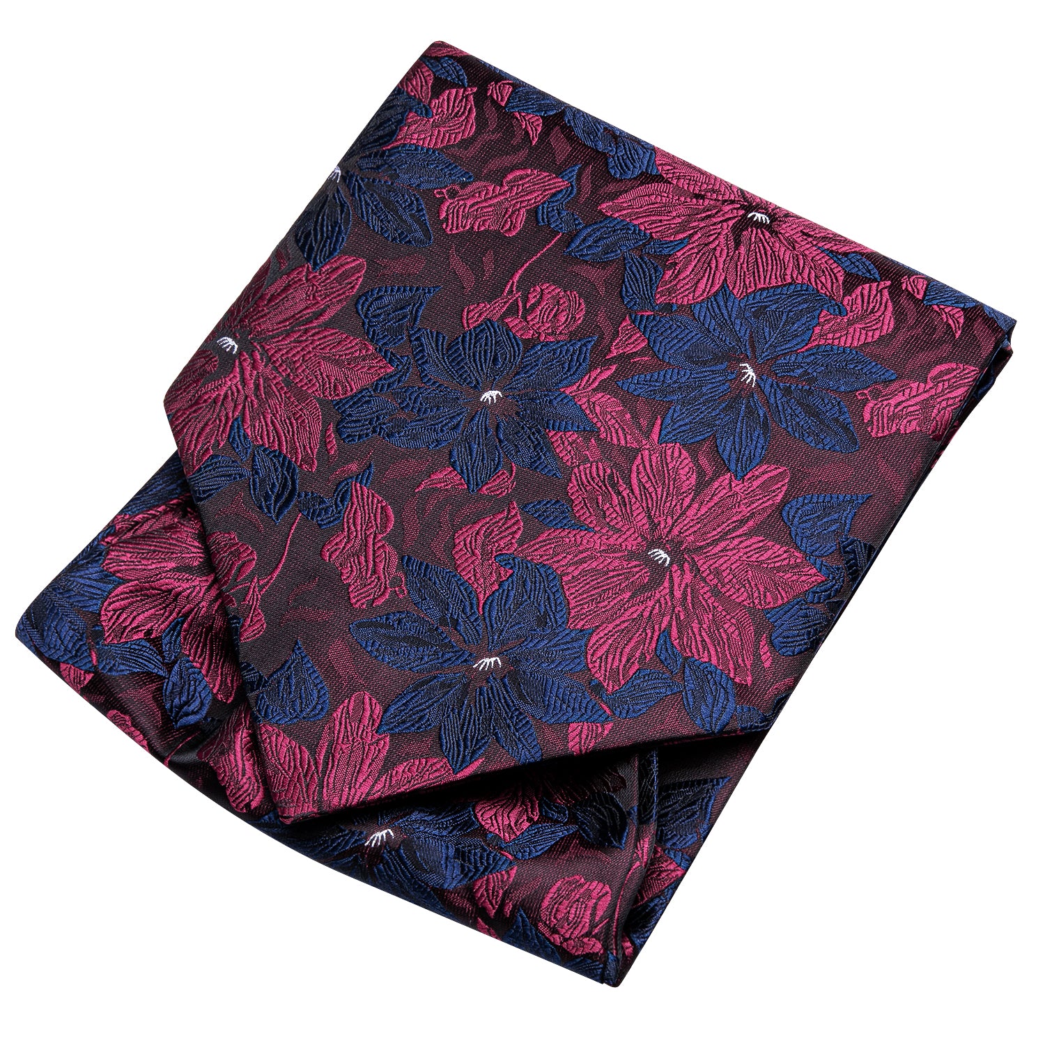Red Blue Floral Ascot Pocket Square Cufflinks Set