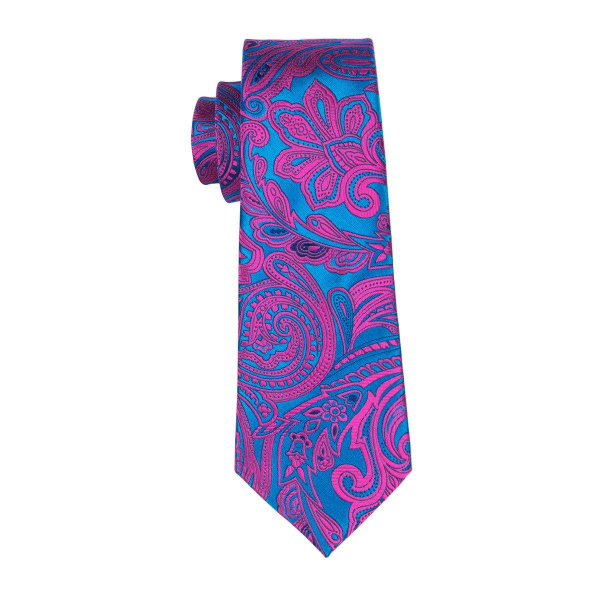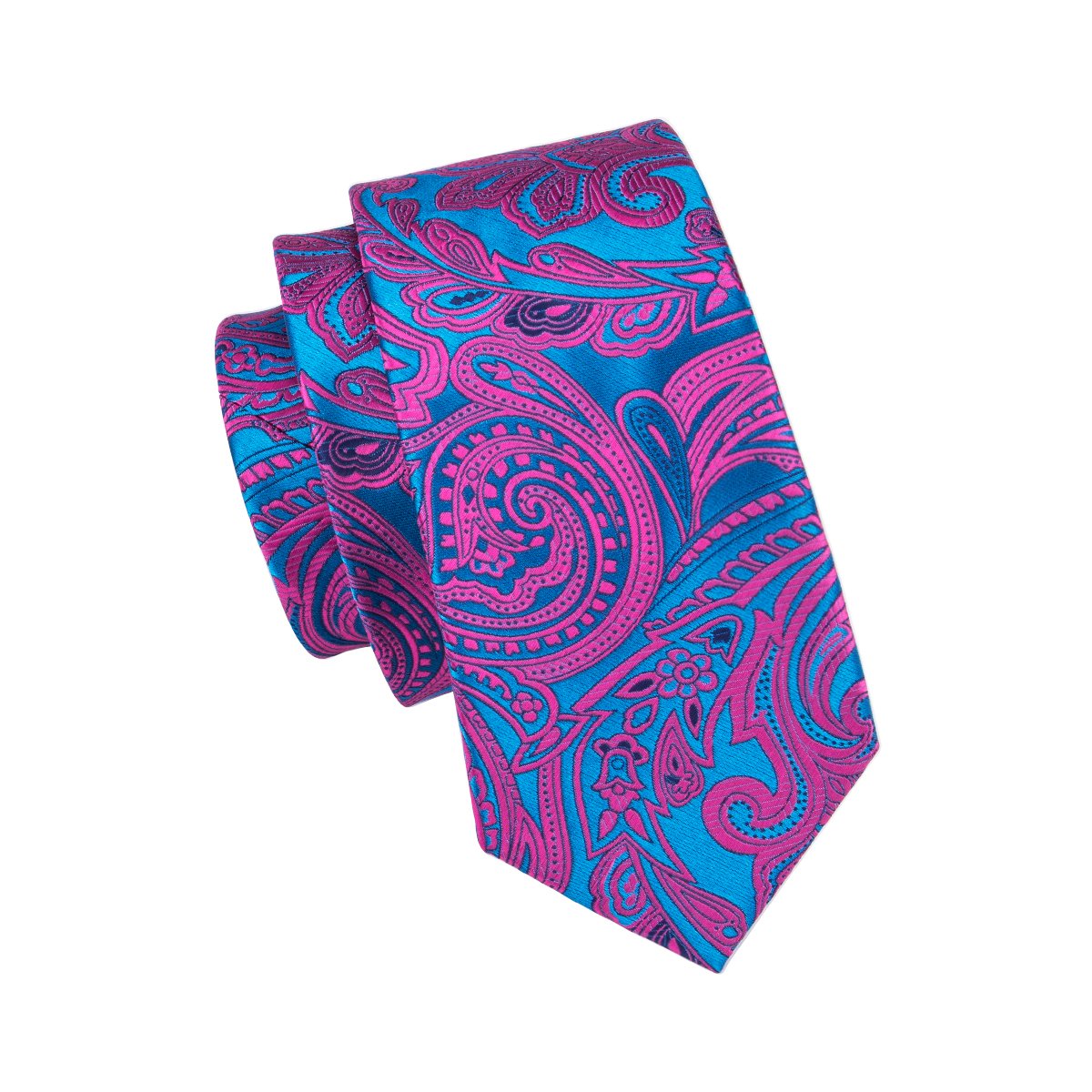 Red Blue Paisley Tie Pocket Square Cufflinks Set Gift Box Set