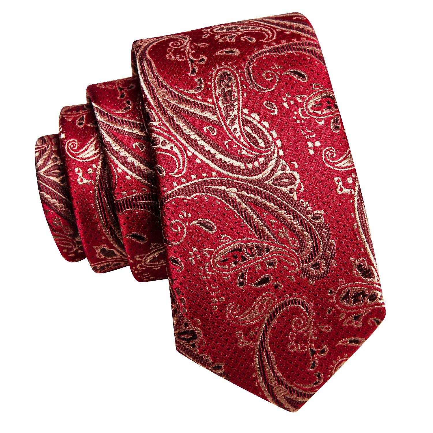 Red Brown Paisley Children's Kids Boys Tie Pocket Square 6cm