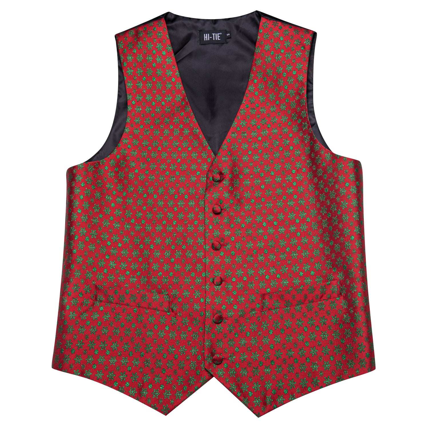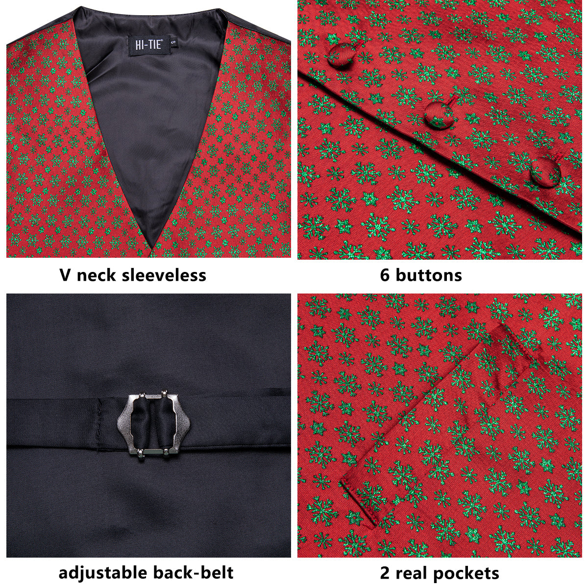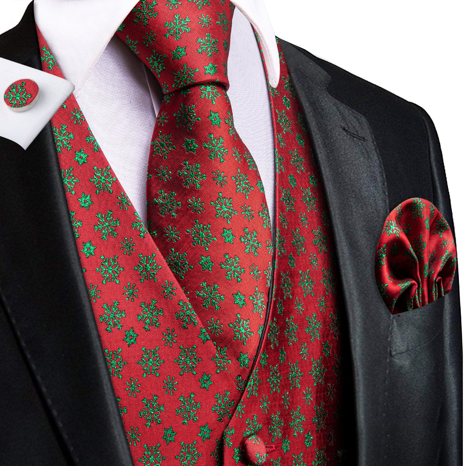 Red Green Christmas Snowflakes Men's Vest Hanky Cufflinks Tie Set