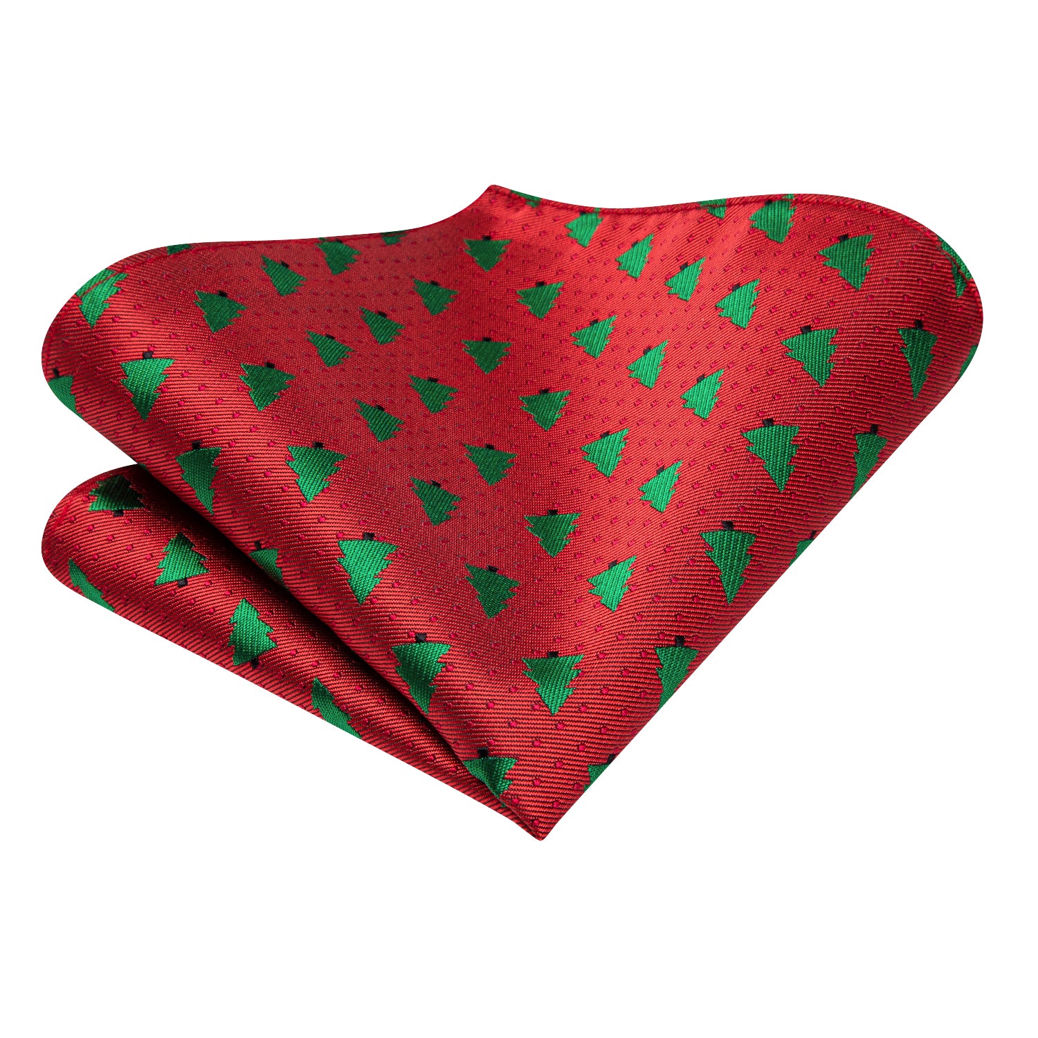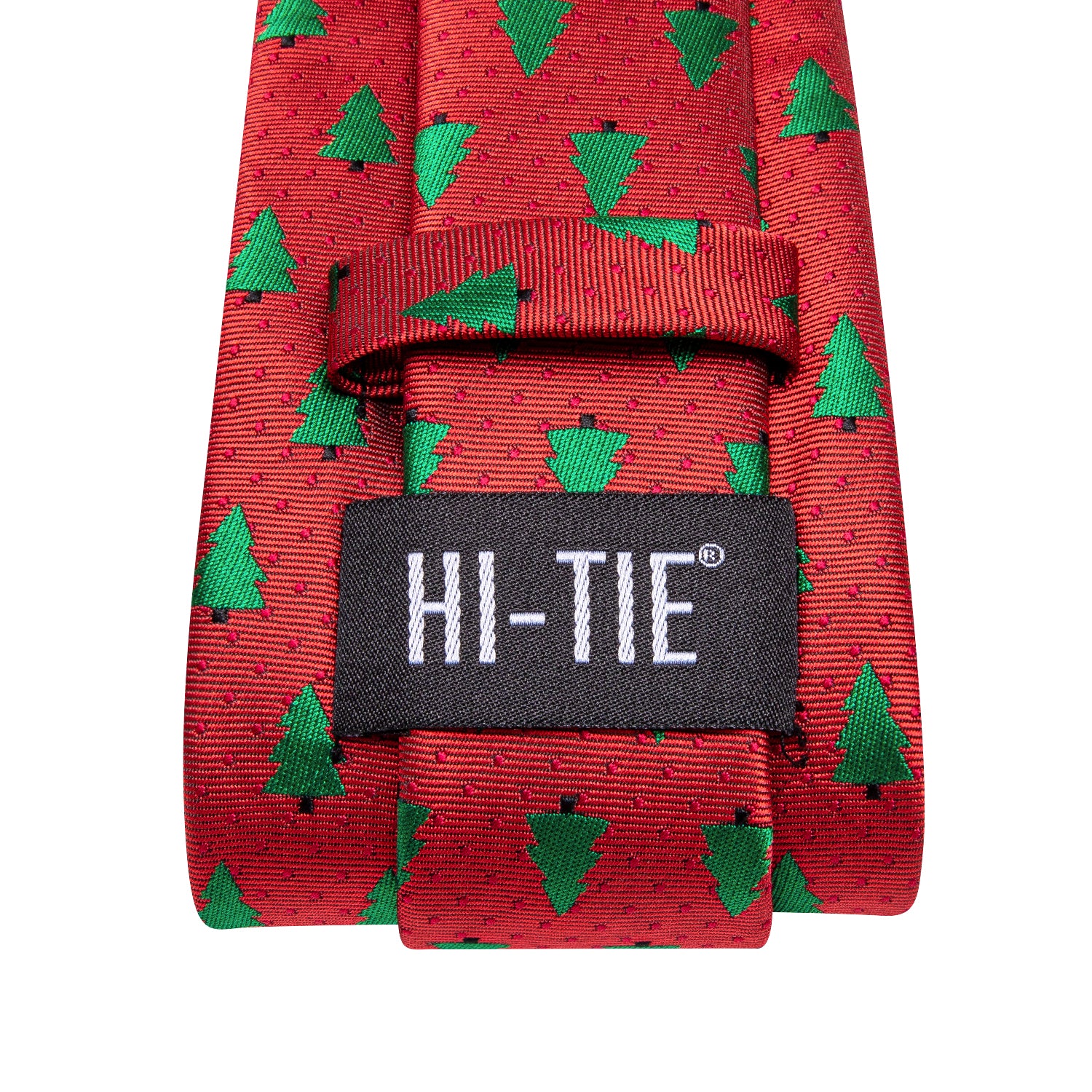 Hi-Tie Red Necktie Green Pines Tie Pocket Square Cufflinks Set