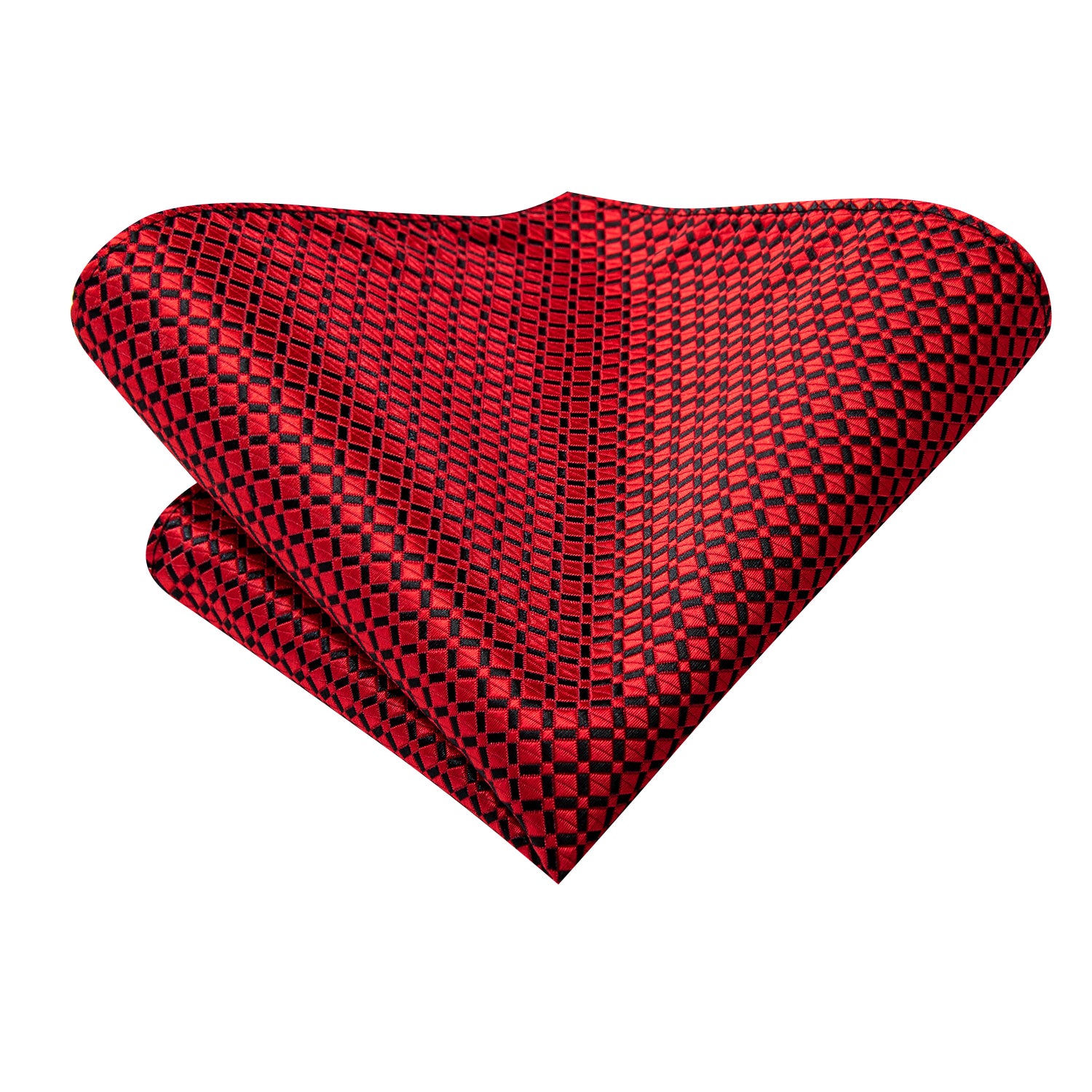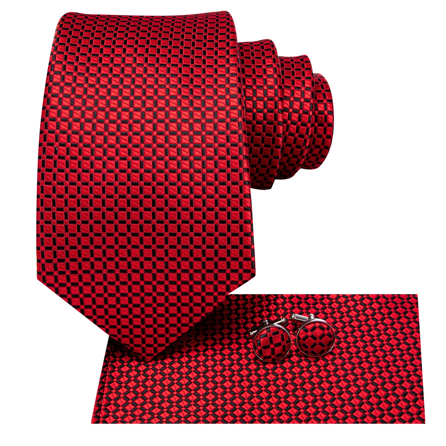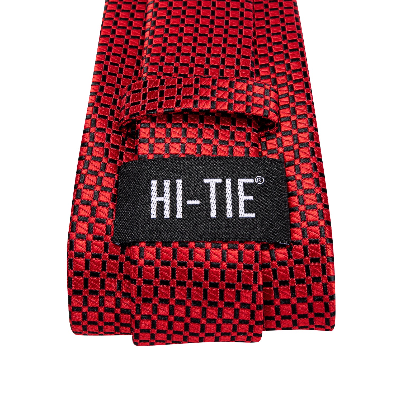 Hi-Tie Red Plaid 67 Inches Extra Long Tie Handkerchief Cufflinks Set
