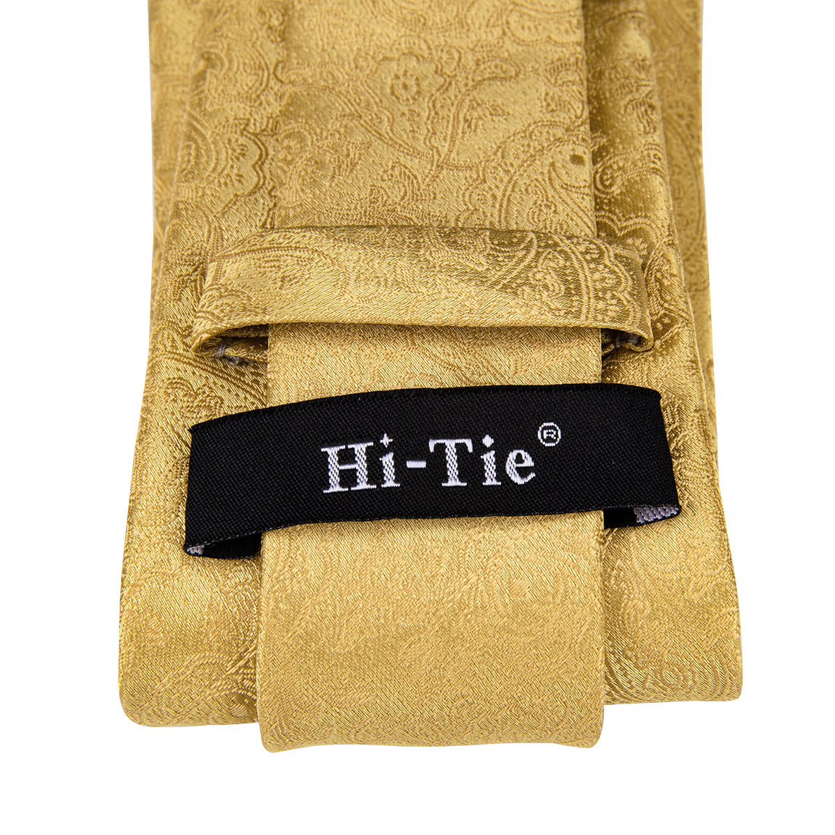 Hi-Tie Necktie Royal Yellow Paisley Tie Pocket Square Cufflinks Set