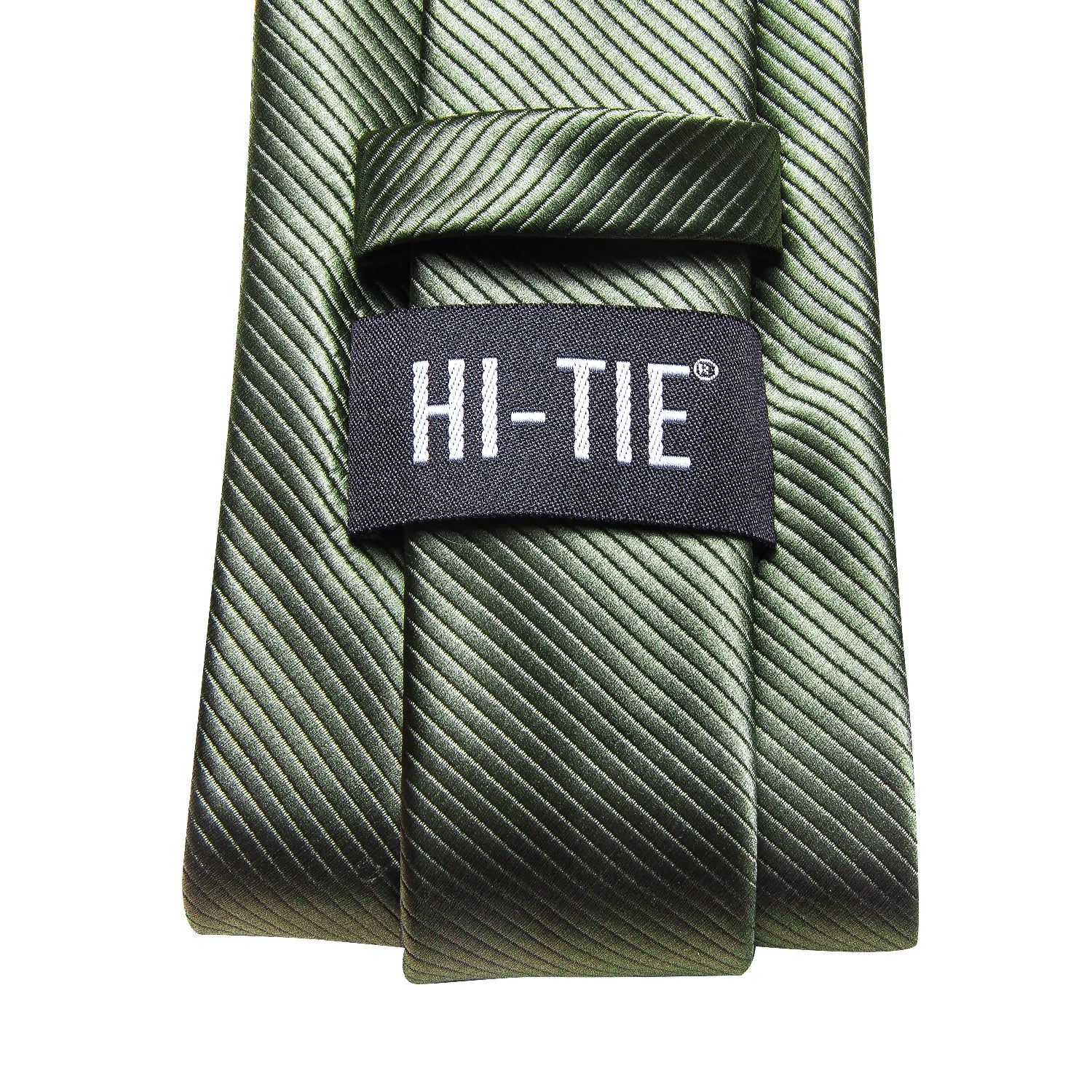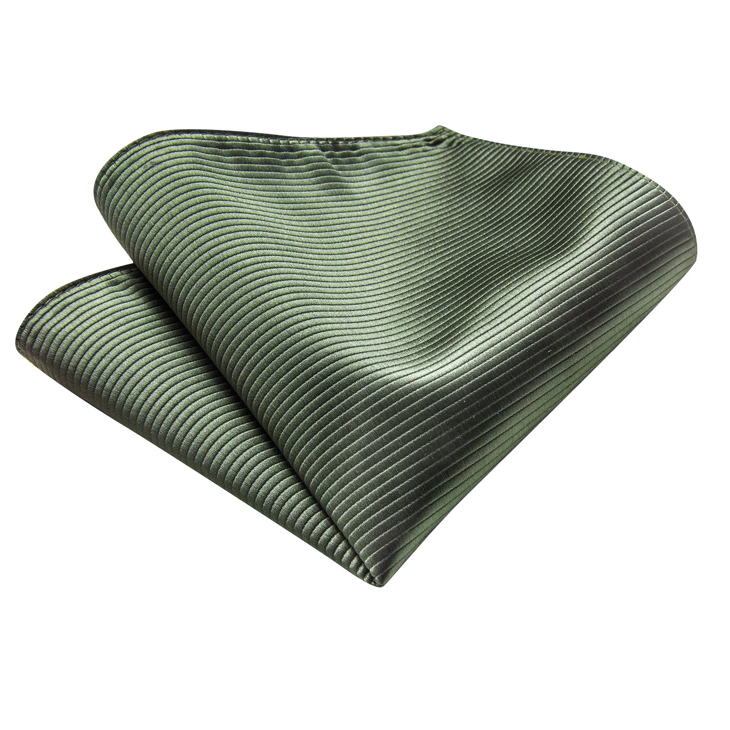 Hi-Tie Sage Green Necktie Solid Silk Tie Pocket Square Cufflinks Set