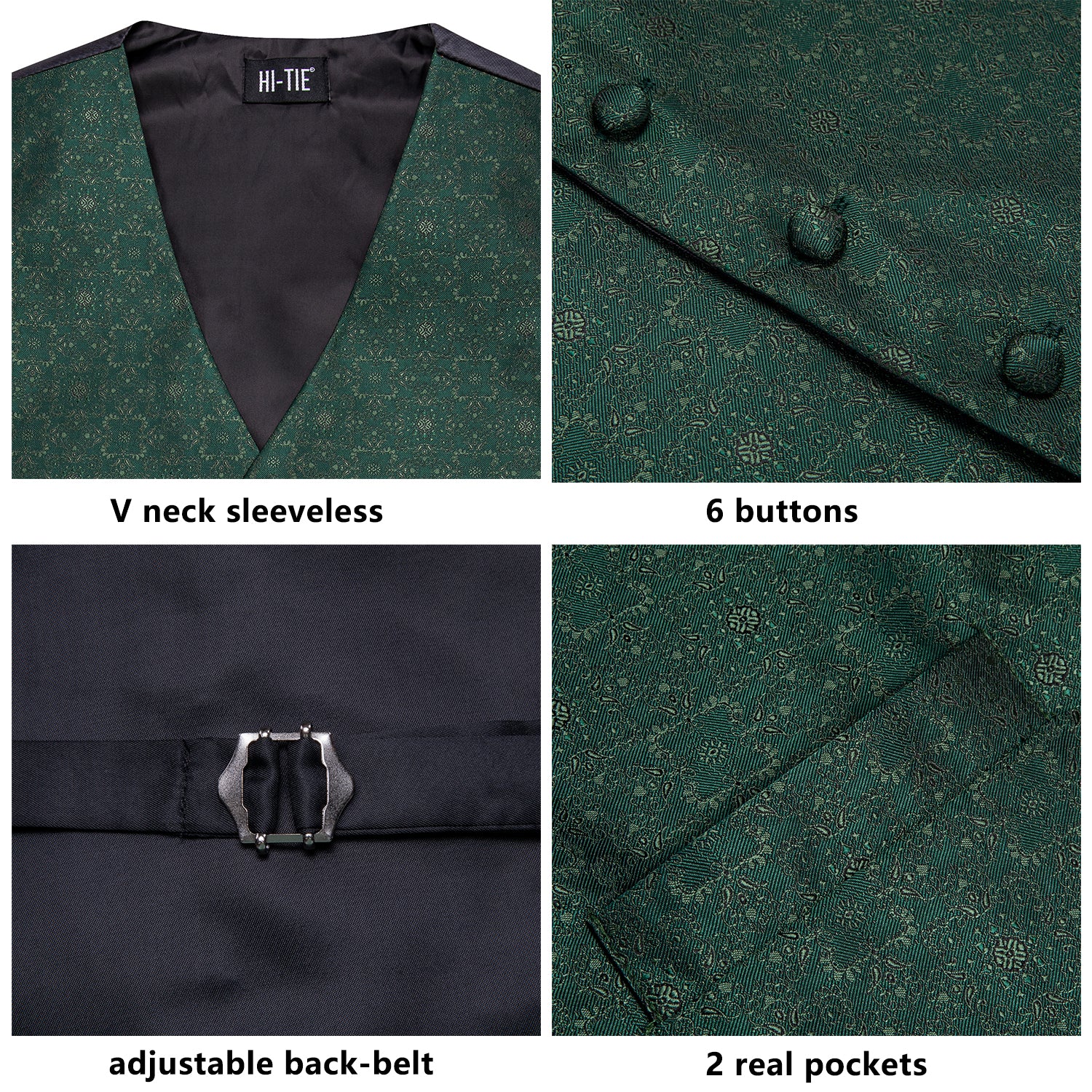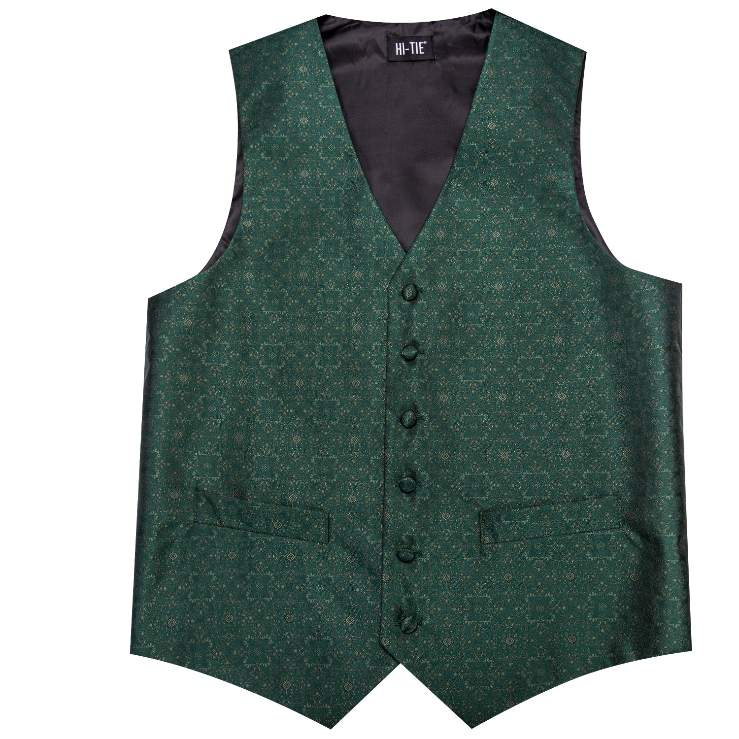 Hi-Tie Sapphire Pine Green Paisley Men's Vest Hanky Cufflinks Tie Set Party