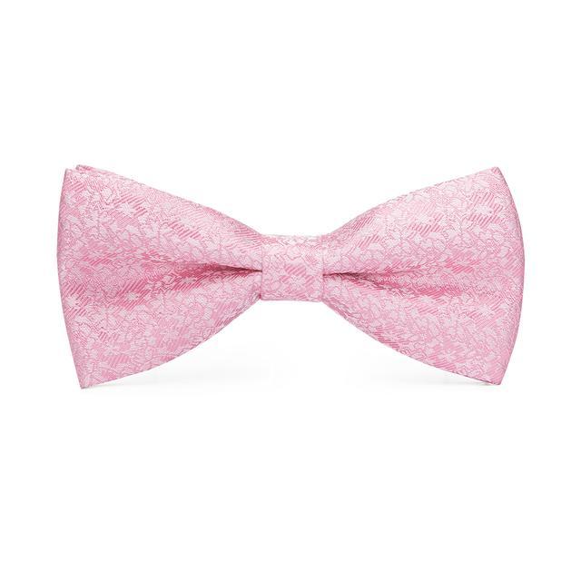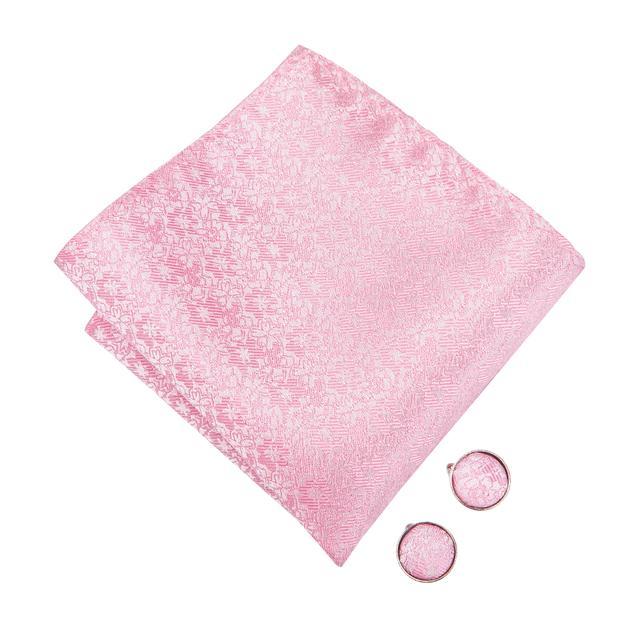 Silver Pink Floral Pre-tied Bow Tie Hanky Cufflinks Pin Set
