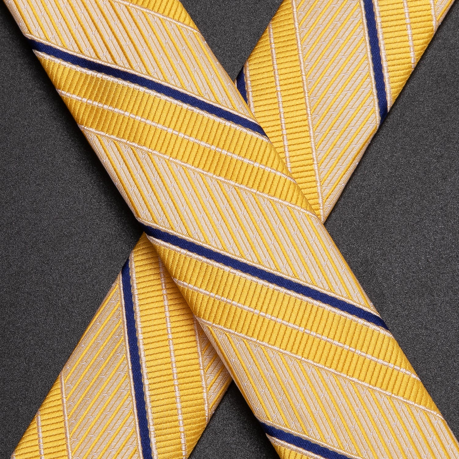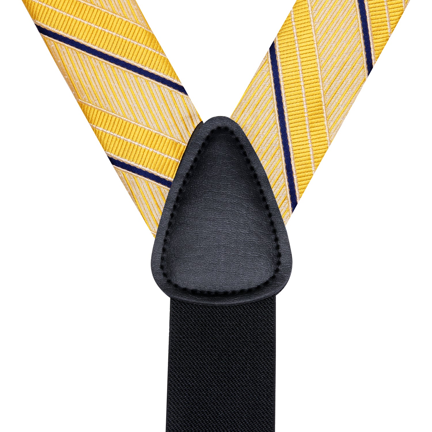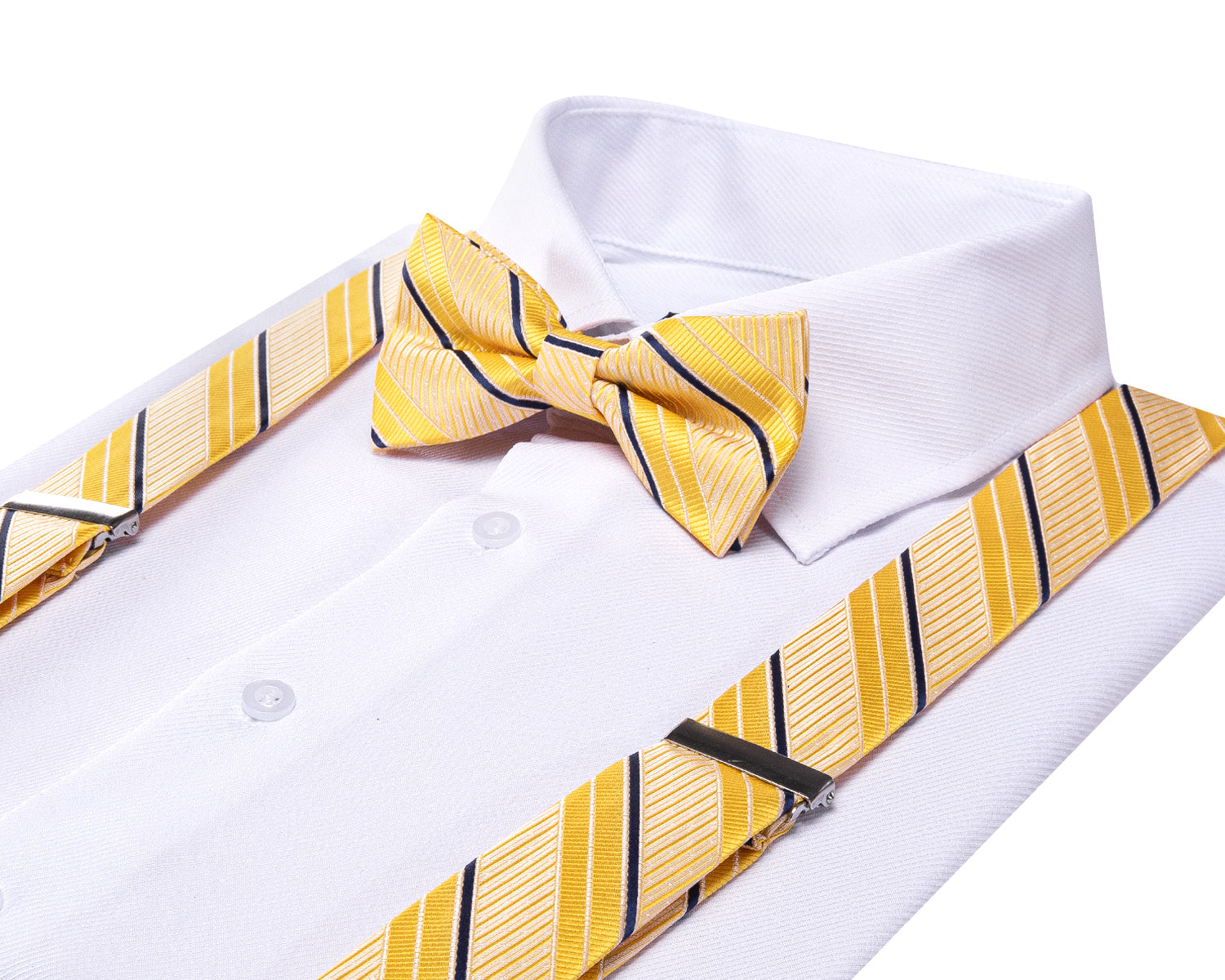 Yellow Blue Striped Suspender Bowtie Hanky Cufflinks Set