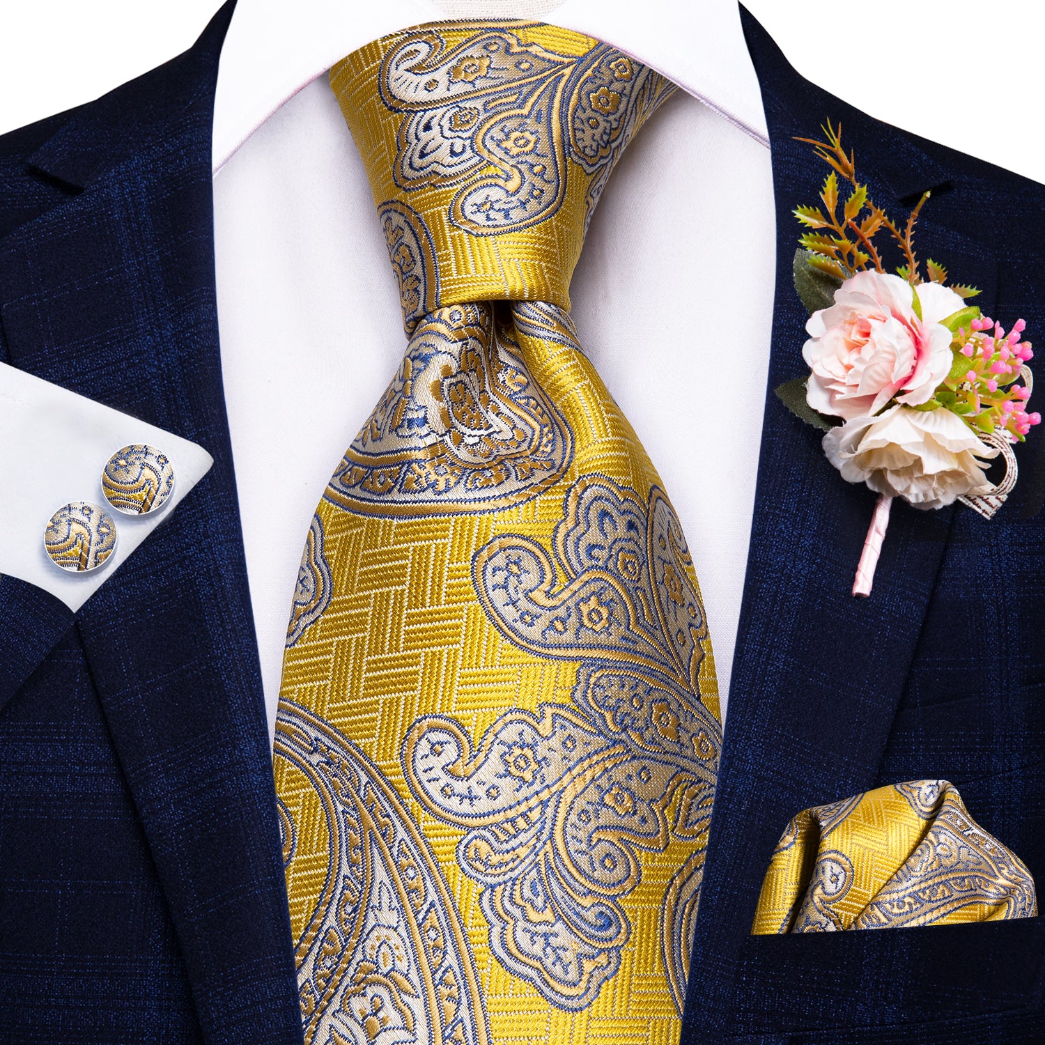 - Included:Men's Single Necktie + Pocket Square + Cufflinks + Brooch
