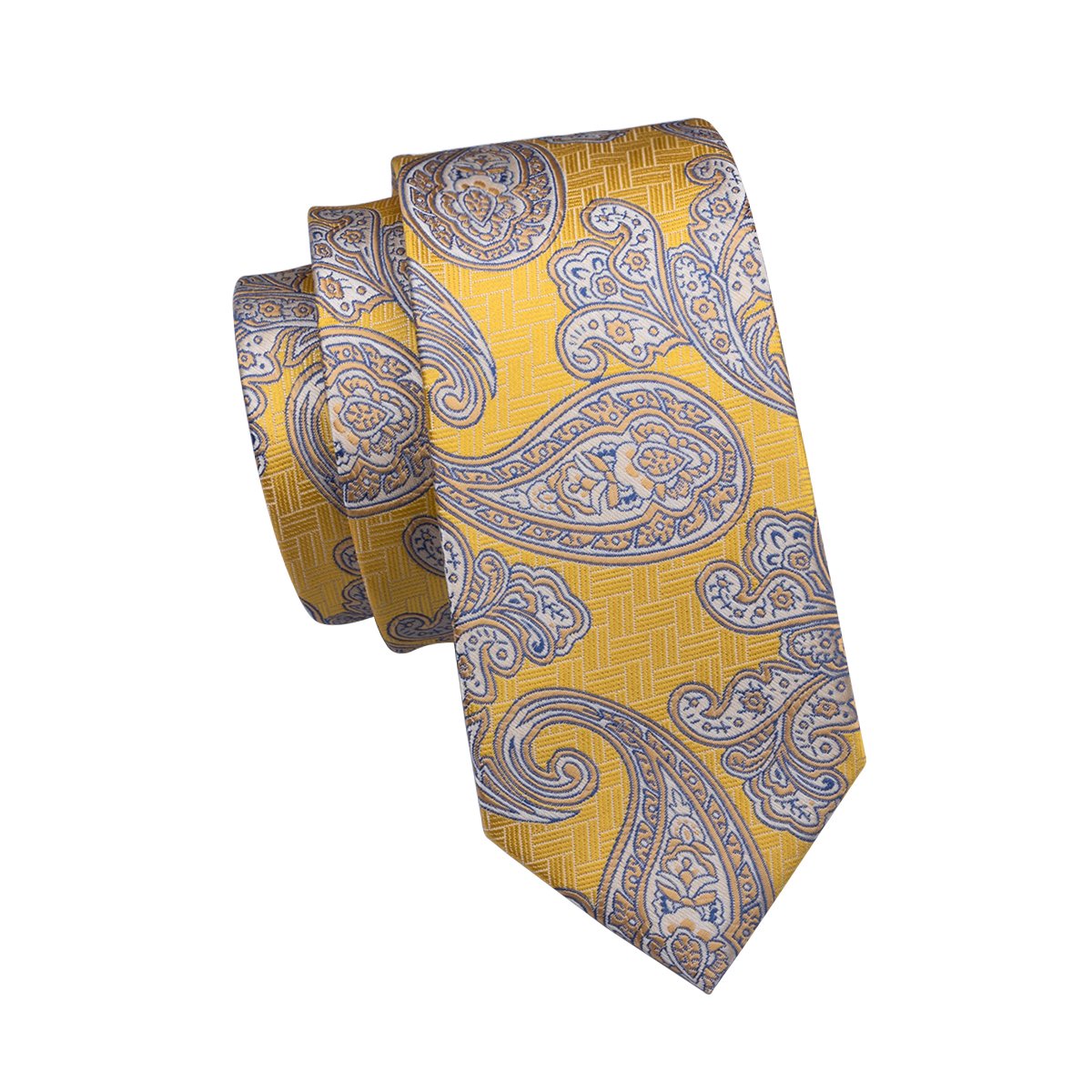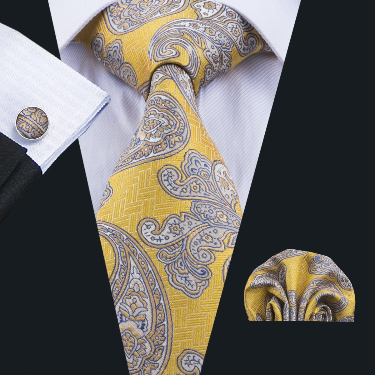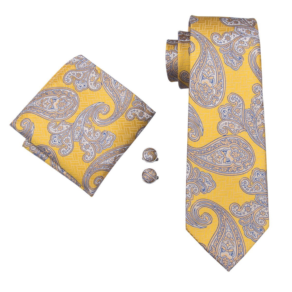 Yellow Paisley Tie Hanky Cufflinks Set Gift Box Set